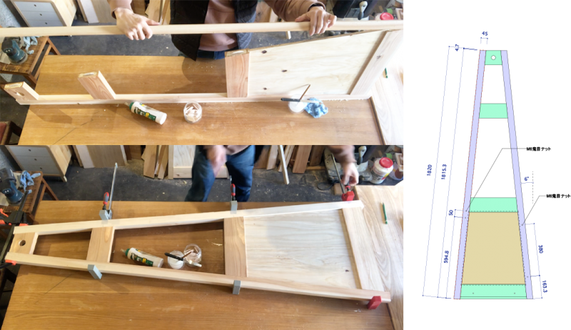 真ん中の3つの筋交は、ほぼ、おまけのようなものなので、釘とボンドの方がいいかも。