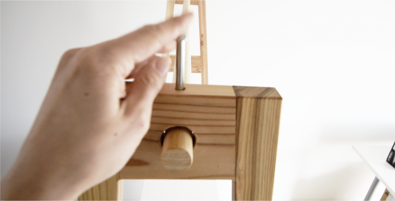 穴の位置を合わせて、ピンを差し込むことで、完全に固定される。